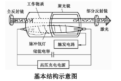 工作物質(zhì)、泵浦系統(tǒng)、諧、振腔和冷卻、綠光系統(tǒng)構(gòu)成的。下圖則是長脈沖固體激光器基本結(jié)構(gòu)的示意圖(冷卻、濾光系統(tǒng)未畫出)。